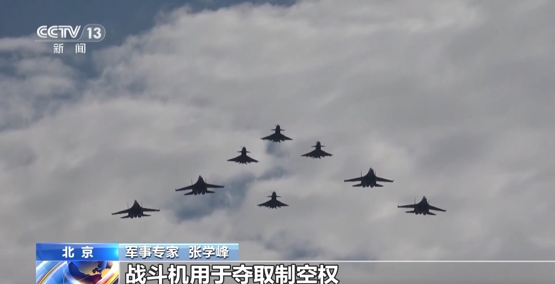 *軍事專家 張學峯:*現代空中作戰需要不同機種之間進行配合,比如説預警機,可以探測到數百公里外的空中目標和海上目標,指揮己方的飛機作戰。
