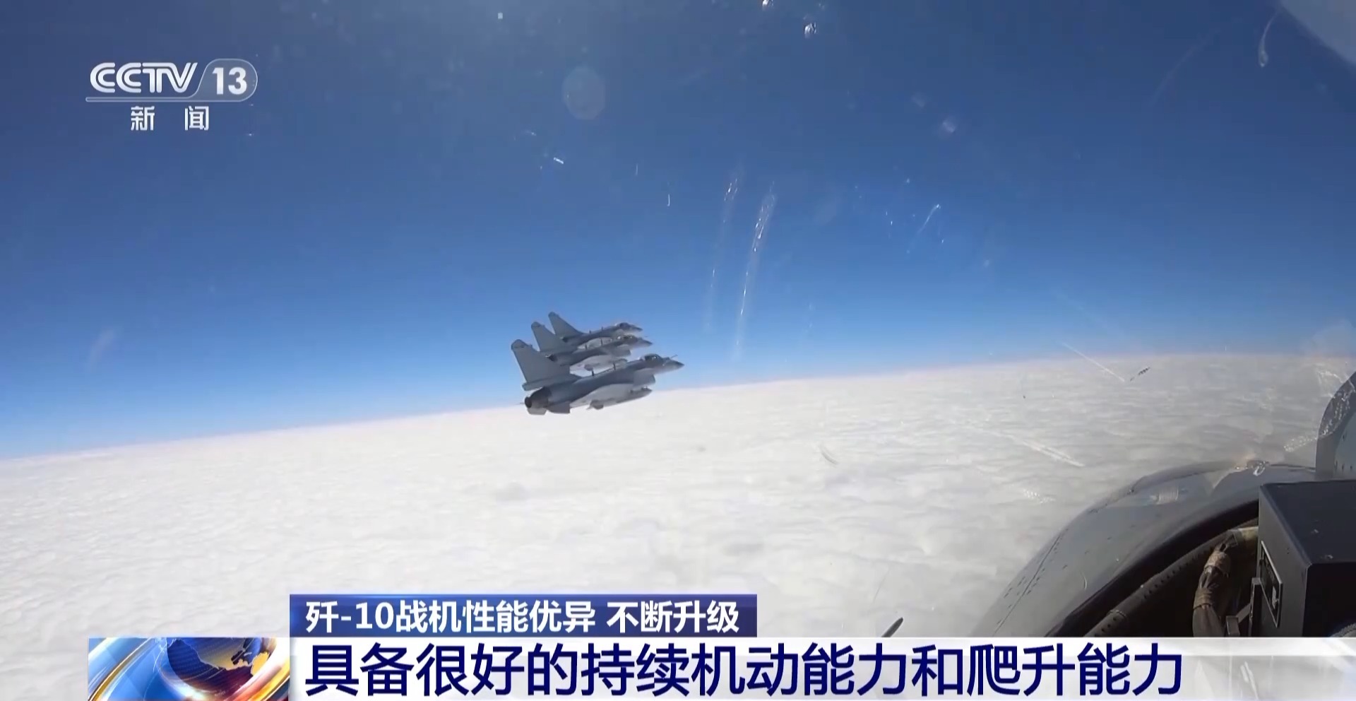軍事專家 張學峯*:*殲-10C則是在殲-10B的基礎上,對航電系統進行了進一步的升級的改進型,它採用了更為先進的有源相控陣雷達,探測距離和抗干擾能力相比殲-10B的雷達,又有大幅度的提高,達到了同時代戰鬥機的先進水平。