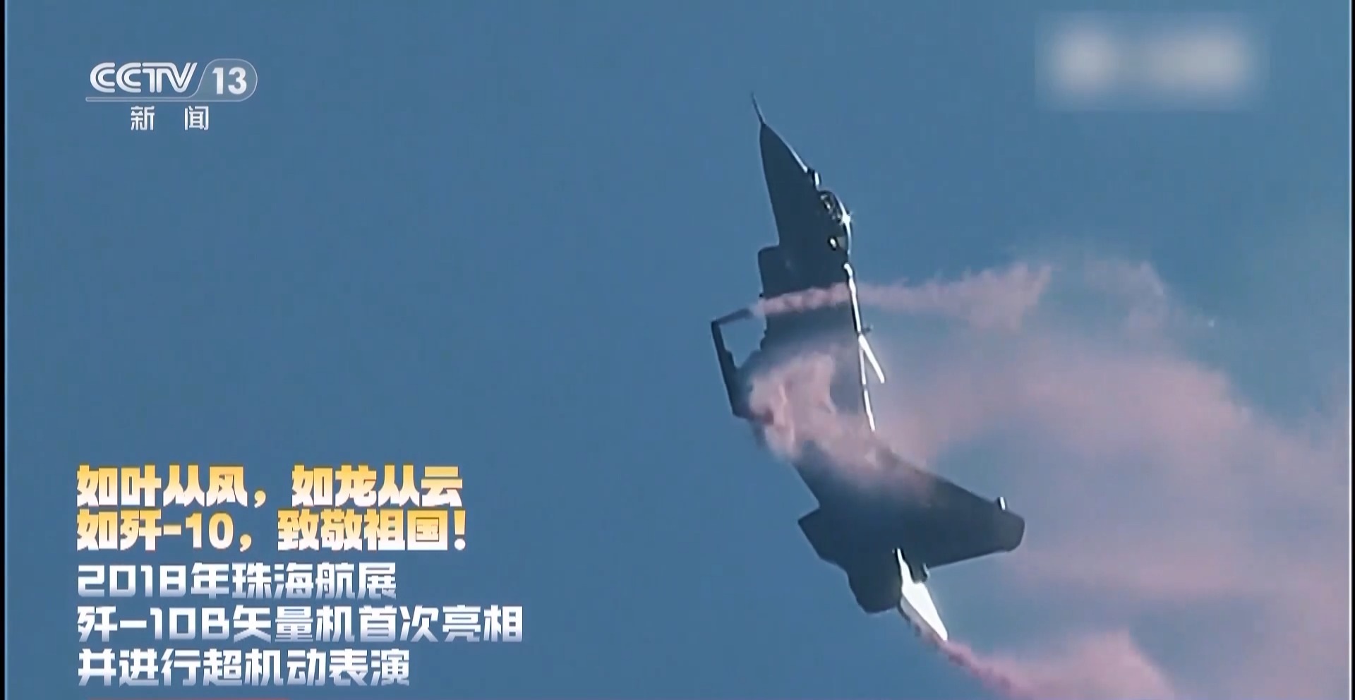 2018年珠海航展,殲-10B矢量機首次亮相併進行超機動表演。如葉從風,如龍從雲,如殲-10,致敬祖國。
