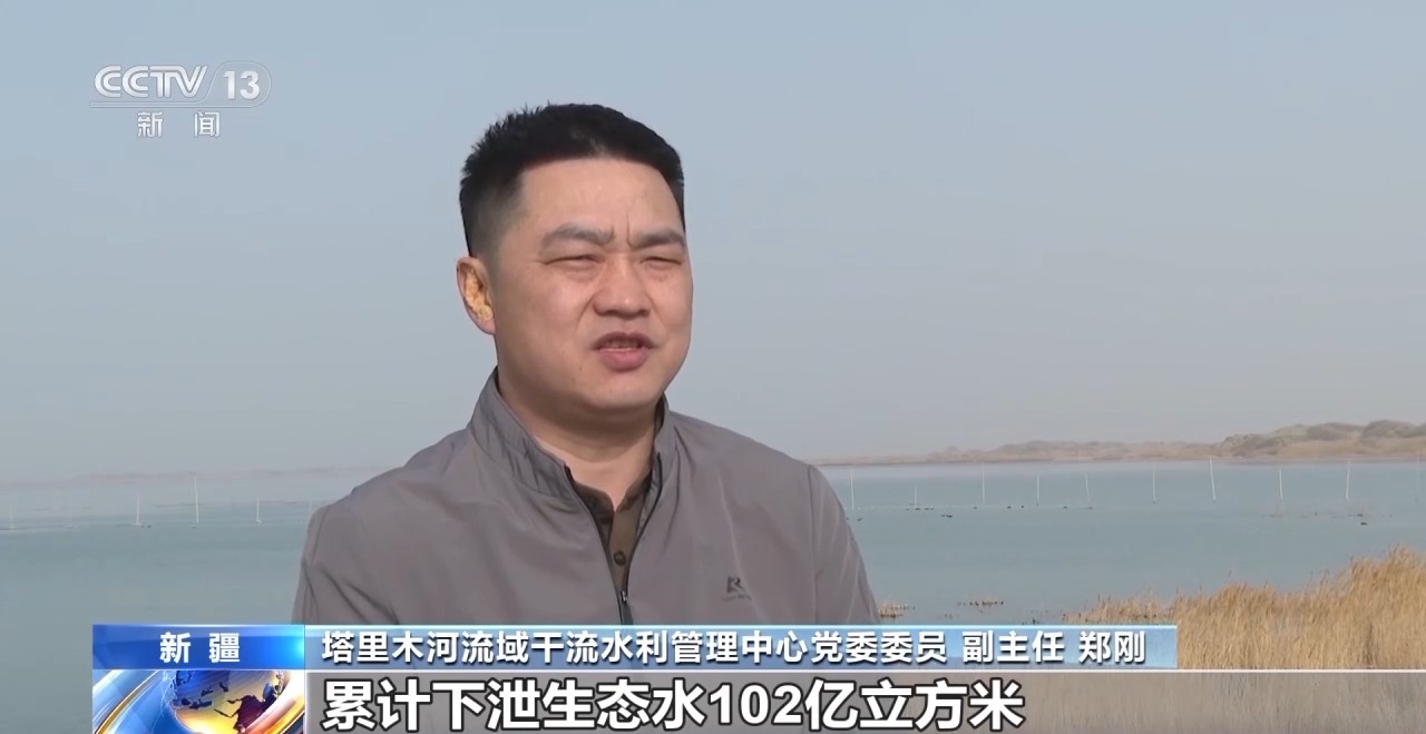 *新疆塔里木河流域幹流水利管理中心黨委委員 副主任 鄭剛:*截至目前,大西海子水庫累計下泄生態水102億立方米,年均下泄4.08億立方米,水頭19次到達塔里木河尾閭台特瑪湖。塔里木河下游綠色廊道得到了有效保護和鞏固。