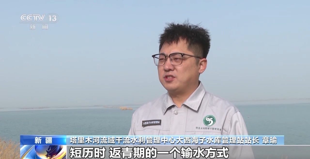 *新疆塔里木河流域幹流水利管理中心大西海子水庫管理站站長 章瑜:*我們採取了雙河道、短歷時、返青期的一個輸水方式,在輸水的同時即時監控沿線生態閘、節制閘,有效擴大它的一個受水面積。