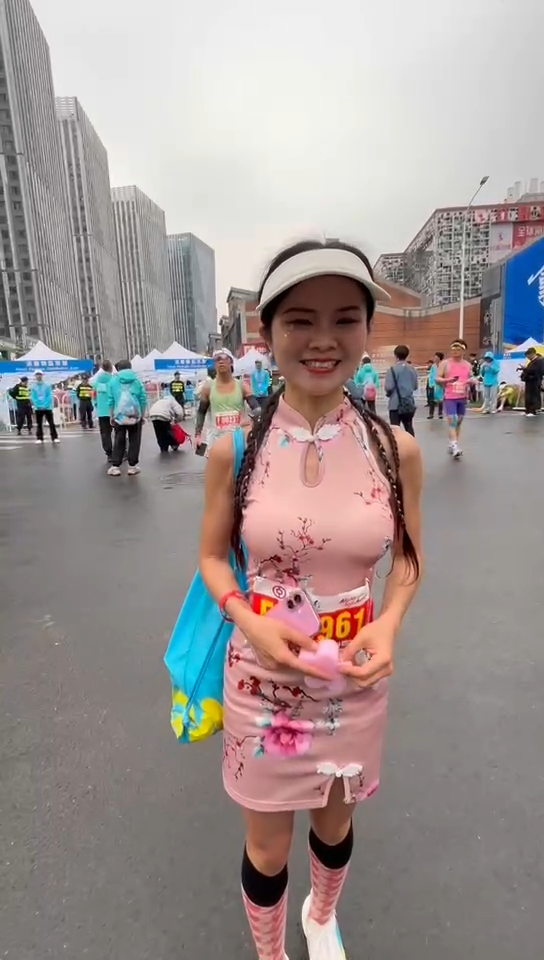 女跑者穿櫻花旗袍參加漢馬:半馬成績應該能進前幾十名
