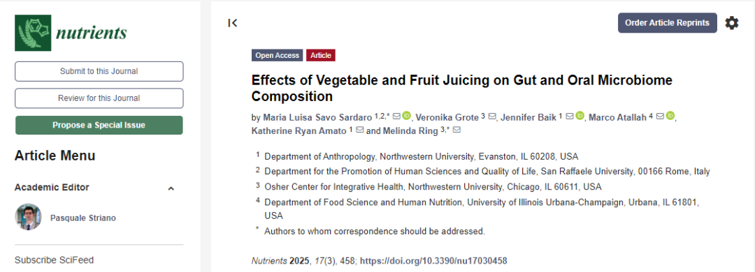 2025年1月,西北大學的研究人員發表在《營養學》期刊上的一項研究