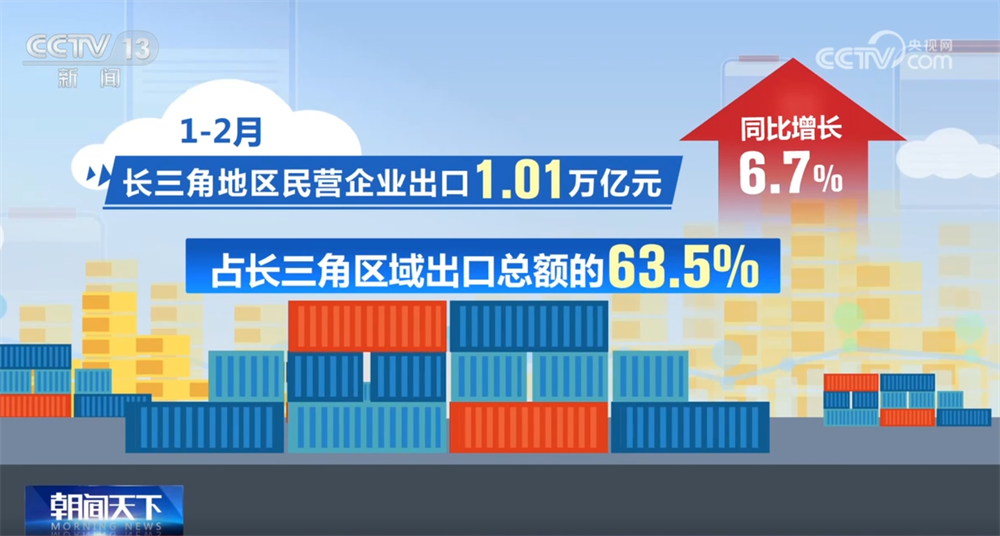 在海關全流程幫扶下,企業順利取得海關AEO認證資質,並將出口推廣到100多個國家和地區。據杭州海關統計,1—2月長三角地區民營企業出口1.01萬億元,同比增長6.7%,佔長三角區域出口總額的63.5%。