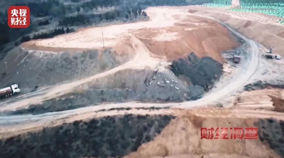 師屯南村的這個煤矸石填埋場,是介休市雲其浩廢棄資源綜合利用有限公司運行的一個煤矸石綜合治理及土地復墾項目。然而,記者在現場看見,這裏並沒有按照項目建設要求修建排水渠等。眼下正在進行覆土作業,仍有部分煤矸石裸露堆放着。