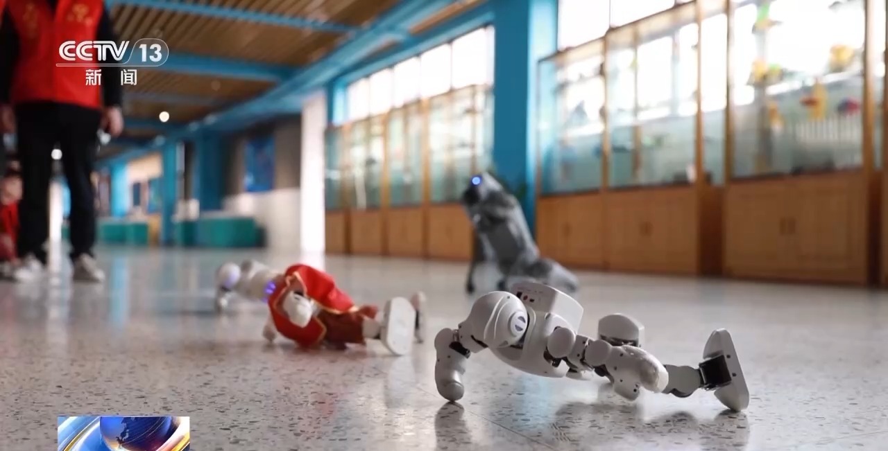 在首批全國中小學科學教育實驗校淮陰師範學院附屬小學,機器狗走進科學課的課堂,倒立行走、翻滾等特技表演,引得學生們陣陣歡呼。和機器狗賽跑、和機器人比拼俯卧撐,讓學生們興奮不已,也充滿好奇。
