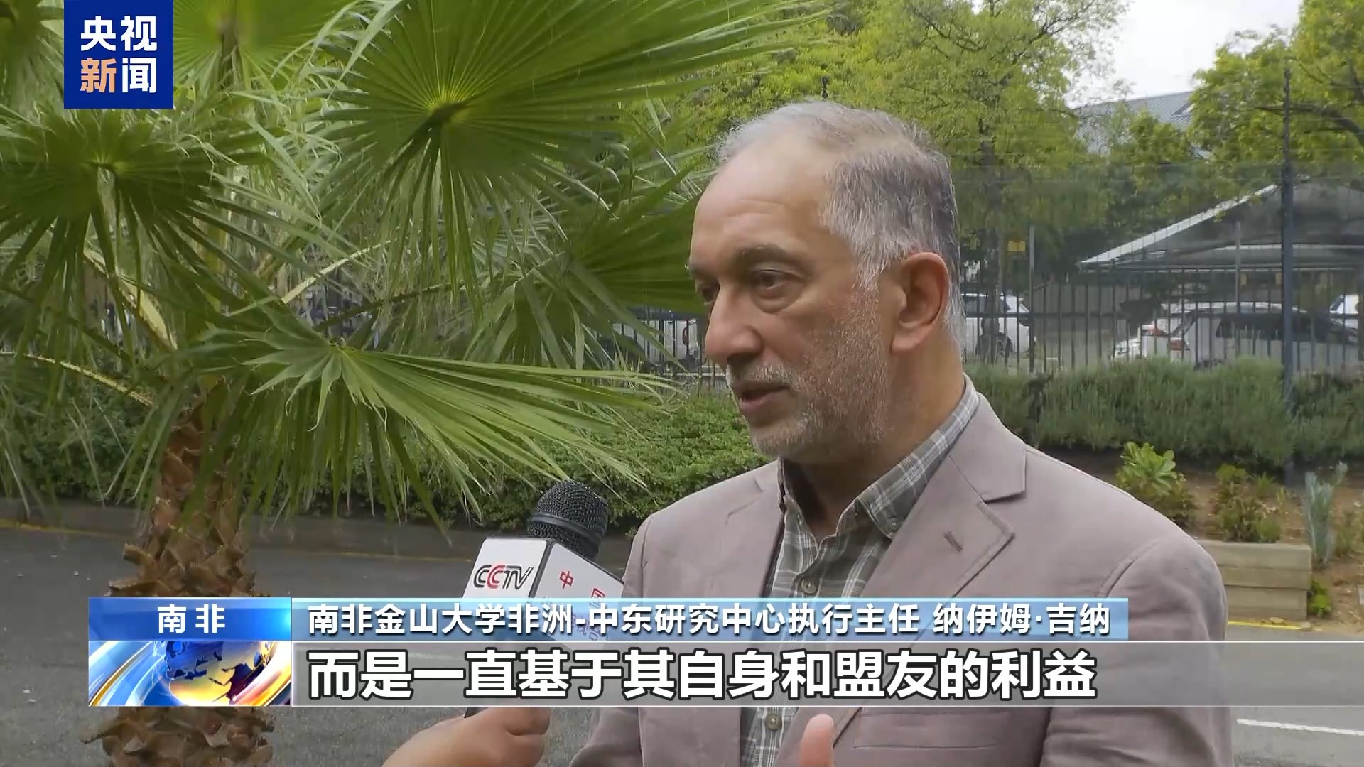 *南非金山大學非洲-中東研究中心執行主任 納伊姆·吉納:*美國做事情從不是基於其價值觀,而是一直基於其自身和盟友的利益。而如今,這些盟友數量也正在不斷減少,所以最主要是考慮美國和以色列的利益。美國正在強迫其他國家調整其外交政策乃至內政,以符合美國及其政治議題的利益。
