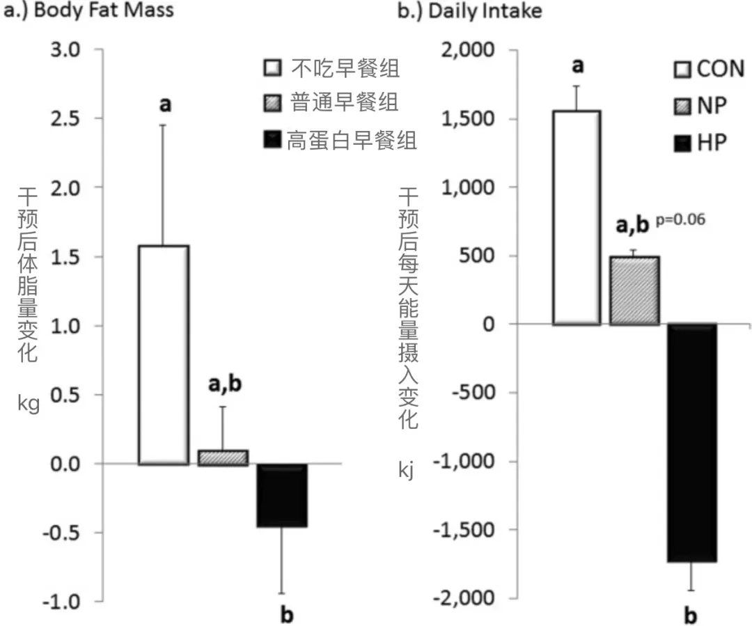 提高早餐中蛋白質的比例,不僅會讓全天的能量攝入減少,超重者體重和體脂也會掉得更快。 有研究人員找來57名體重偏高的青少年,分成三組測試早餐對體重的影響: