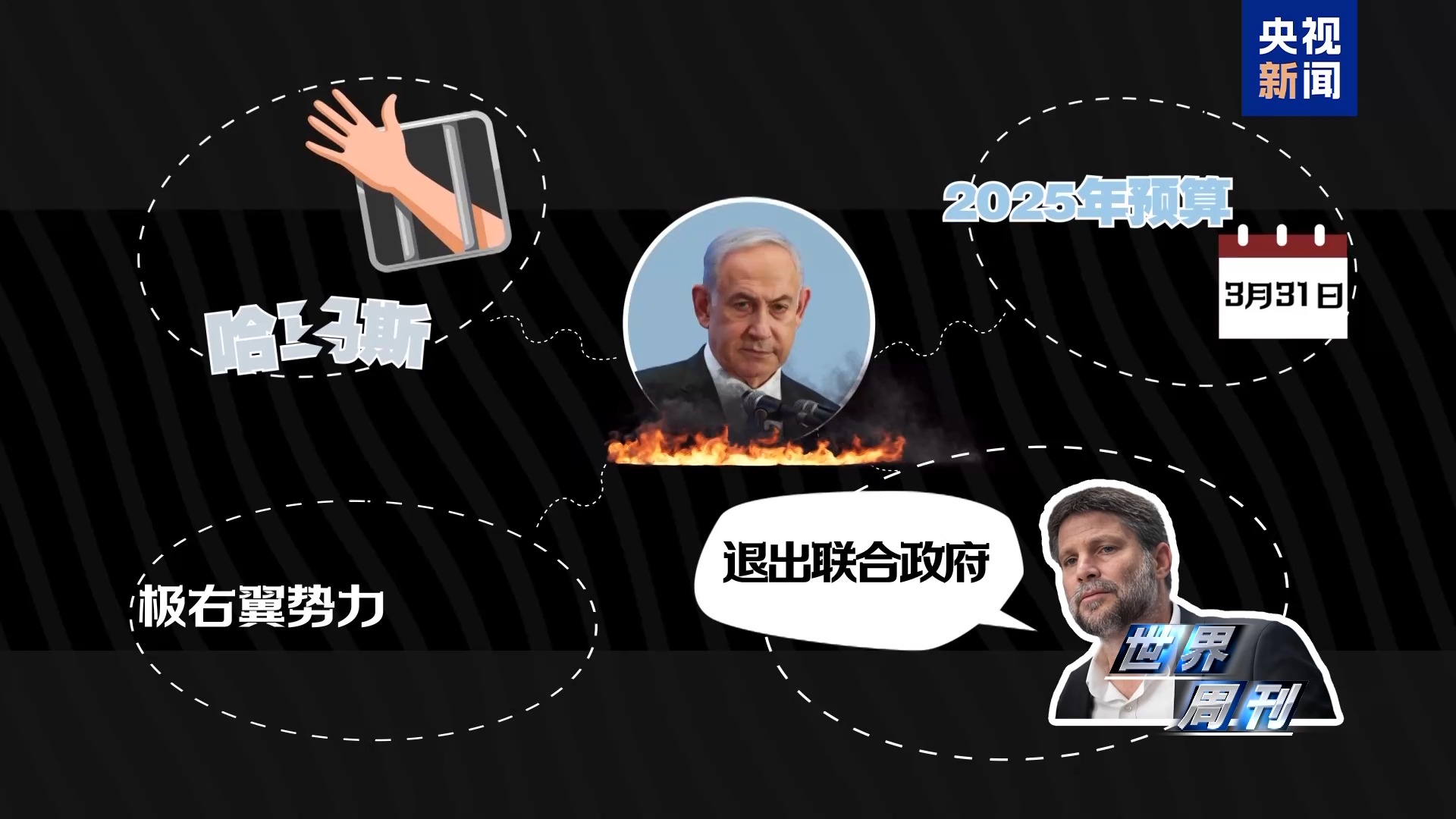 一方面,大多數以色列人更關心剩餘人質的命運,而非內塔尼亞胡所要求的“徹底擊敗”哈馬斯;然而另一方面,以色列國會如不能在3月底前通過2025年預算,將自動解散並提前大選。而極右翼勢力對停火協議心懷不滿,要求重返加沙戰場。以財長斯莫特里赫威脅稱,如果不“重啓戰鬥”,他將帶領其領導的政黨退出聯合政府。