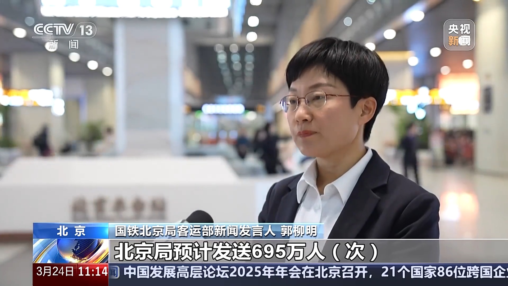 *國鐵北京局客運部新聞發言人 郭柳明:*清明運輸期間5天,北京局預計發送695萬人次,同比增幅4.6%。高峯日在4月4日,預計發送165萬人次。客流主要集中在濟南、太原、鄭州、瀋陽、青島、西安以及北京至天津、保定、石家莊、張家口往返間。