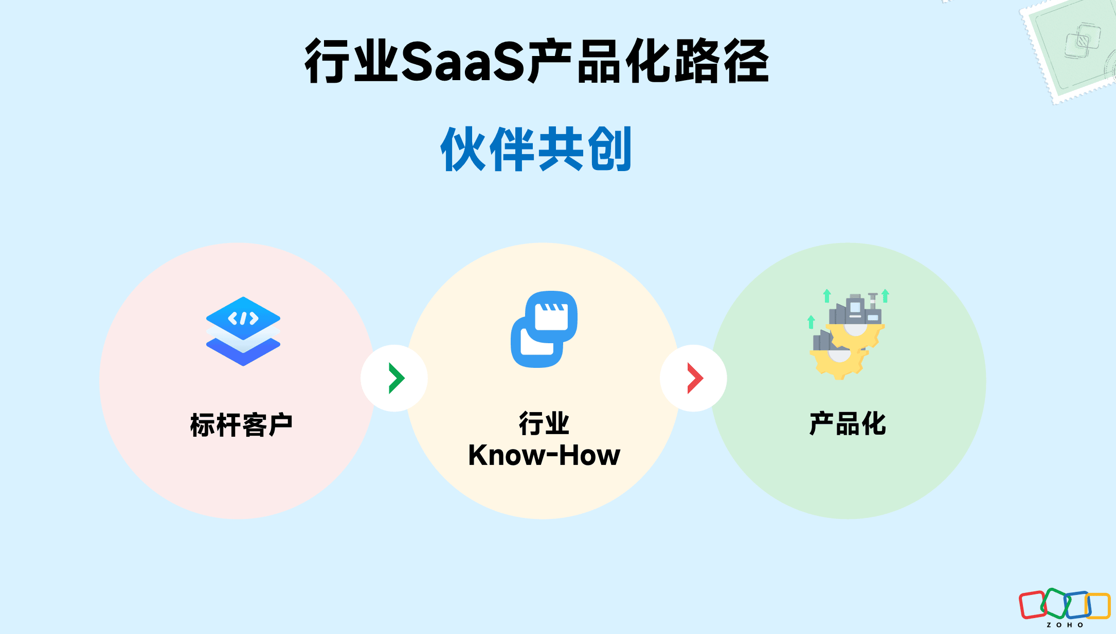 夏海峯説,Zoho垂直SaaS的實現方式,主要依託自身能力加夥伴共創,共同為客户提供服務。通過聯合行業生態中的不同參與者,共同開發行業專屬解決方案,並以互補能力為客户提供端到端的服務。