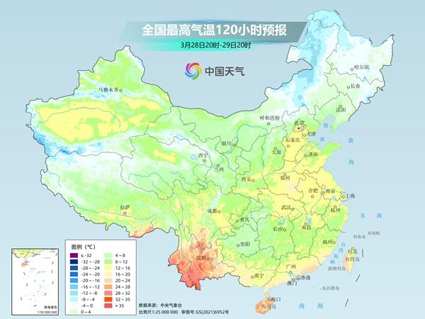 要知道常年3月下旬,30℃以上區域一般只出現在雲南河谷還有海南島的少部分地區,可見這輪暖熱的罕見程度。