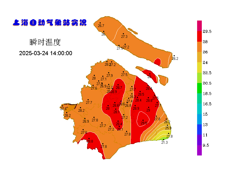 週六徐家彙站最高氣温26.8℃,