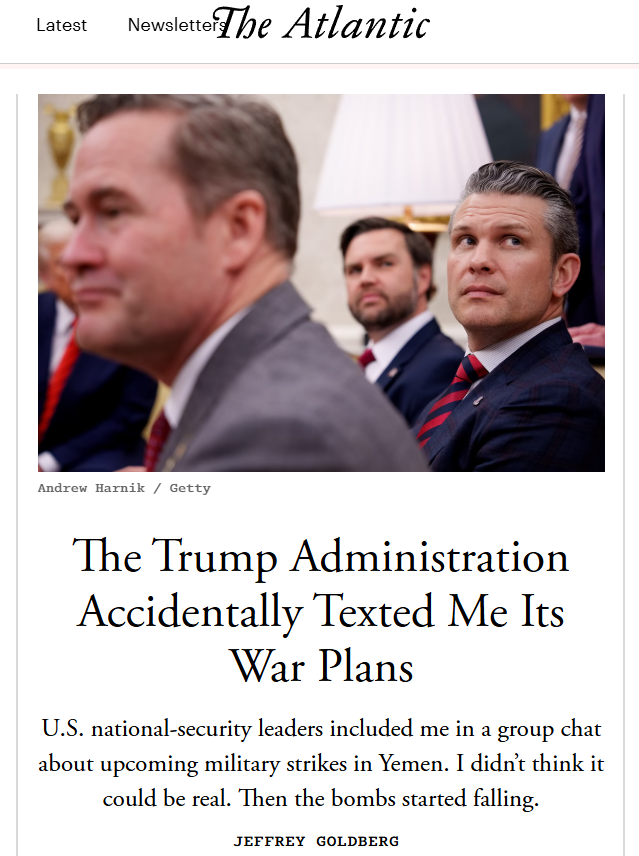 戈德堡在文章中説,他以前從未被邀請參加這類會議,而且在他多年來報道國家安全事務的過程中,從未聽説過有人通過商業信息應用程序召開會議。