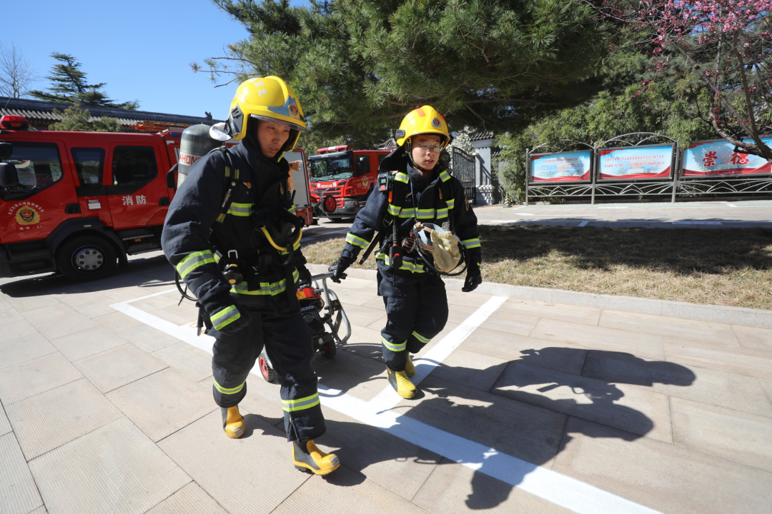 通氣會前,石景山區消防救援支隊在八寶山革命公墓辦公樓舉行消防演習,模擬樓內一宿舍因線路短路起火且有人員被困的警情。演習檢驗了公墓微型消防站處置初期火災及消防救援力量撲救迅猛火災的能力。