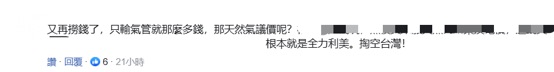 “又在撈錢了,只輸氣管就那麼多錢,那天然氣議價呢……根本就是全力利美,掏空台灣!”