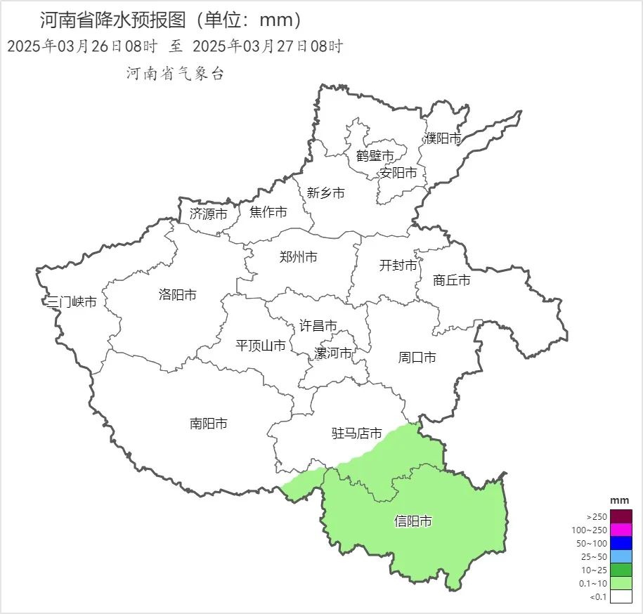 冷空氣前線將於26號白天抵達河南西北邊界,在涼風的吹拂下,西部、北部的最高氣温率先回落至25℃以下,而中東部、南部則繼續固守30℃線。冷空氣入夜後繼續向南奔襲,不出一個晚上,其前線便會抵達最南端的信陽。