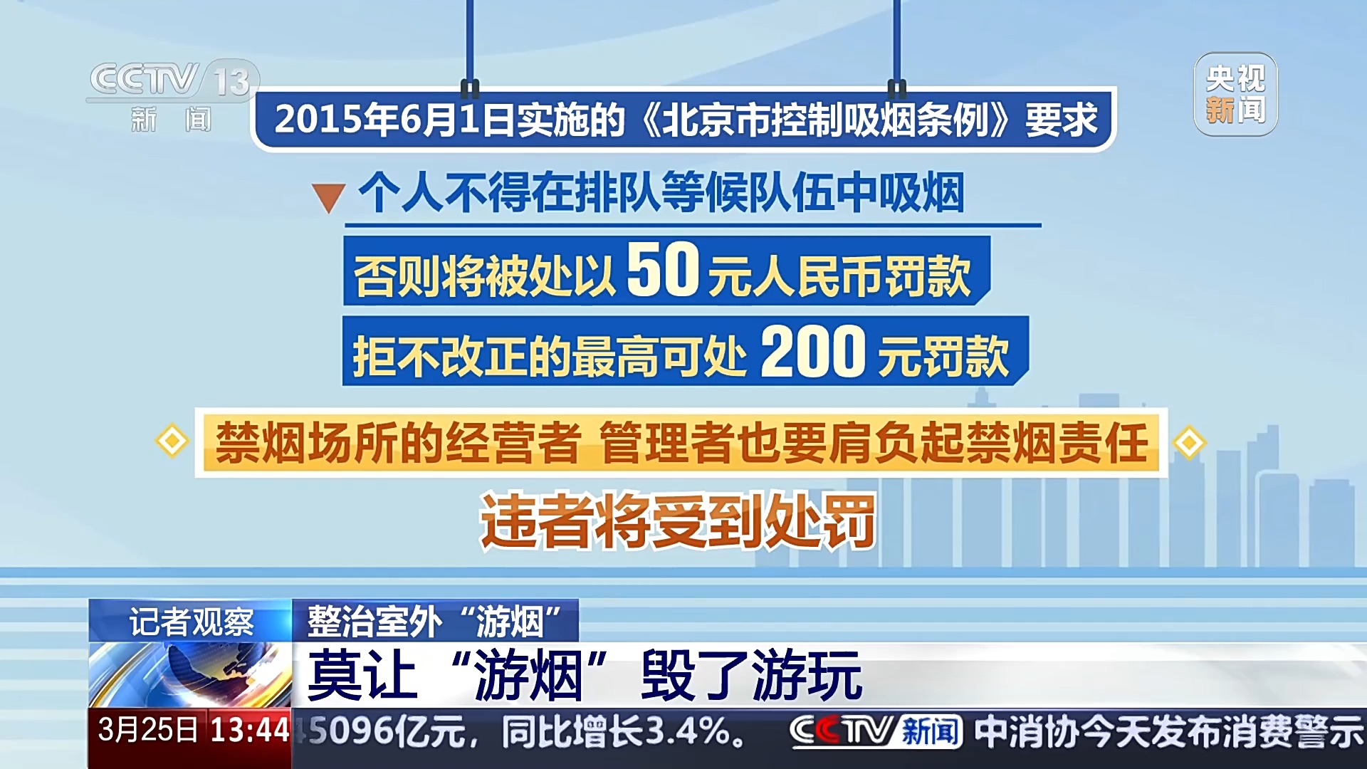 據瞭解,按照《“健康中國2030”規劃綱要》,要全面推進控煙履約,加大控煙力度,運用價格、税收、法律等手段提高控煙成效。相關控煙法律研究者表示,目前“遊煙”的治理面臨的管理難的情況,需要更加明確管理責任方。據今年3月北京市最新調整的政府部門職責權限,控制吸煙方面的6項行政處罰和與之相關的行政檢查職權為區衞生健康委行使。