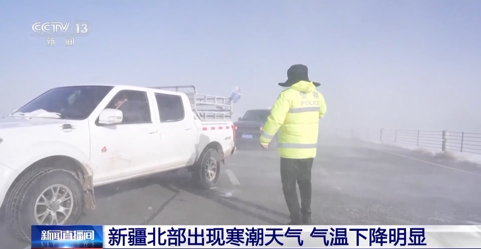 *總枱記者 高鵬飛:*在這幾天,新疆氣象部門連續發佈了多道不同的天氣預警,*有暴雪藍色預警、大風橙色預警、寒潮藍色預警和道路結冰黃色預警,*還可能隨時調整。在這幾天,冷空氣給新疆北部大部分地區帶來了雨夾雪、大雪天氣。