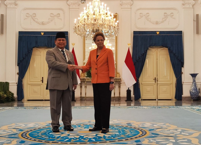 當地時間3月25日,印尼總統普拉博沃(左)在雅加達會見到訪的新開發銀行行長羅塞芙。圖源:印尼國家通訊社安塔拉通訊社