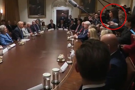“總統先生,你説你的國家安全事務助理在涉及一名記者的事件後接受了教訓……”,柯林斯還未提問完,特朗普便打斷她並嚴肅説道:“不好意思,我沒選你”,然後他看向另一名記者説,“你繼續(提問)”。