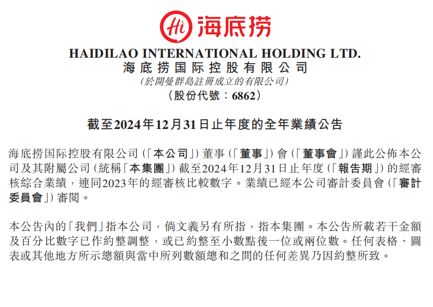 海底撈2024年總營收427.55億元,創新策略驅動多元化佈局