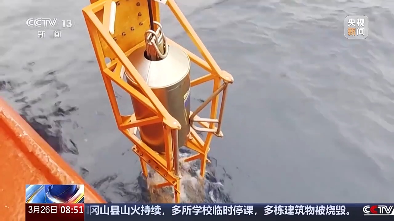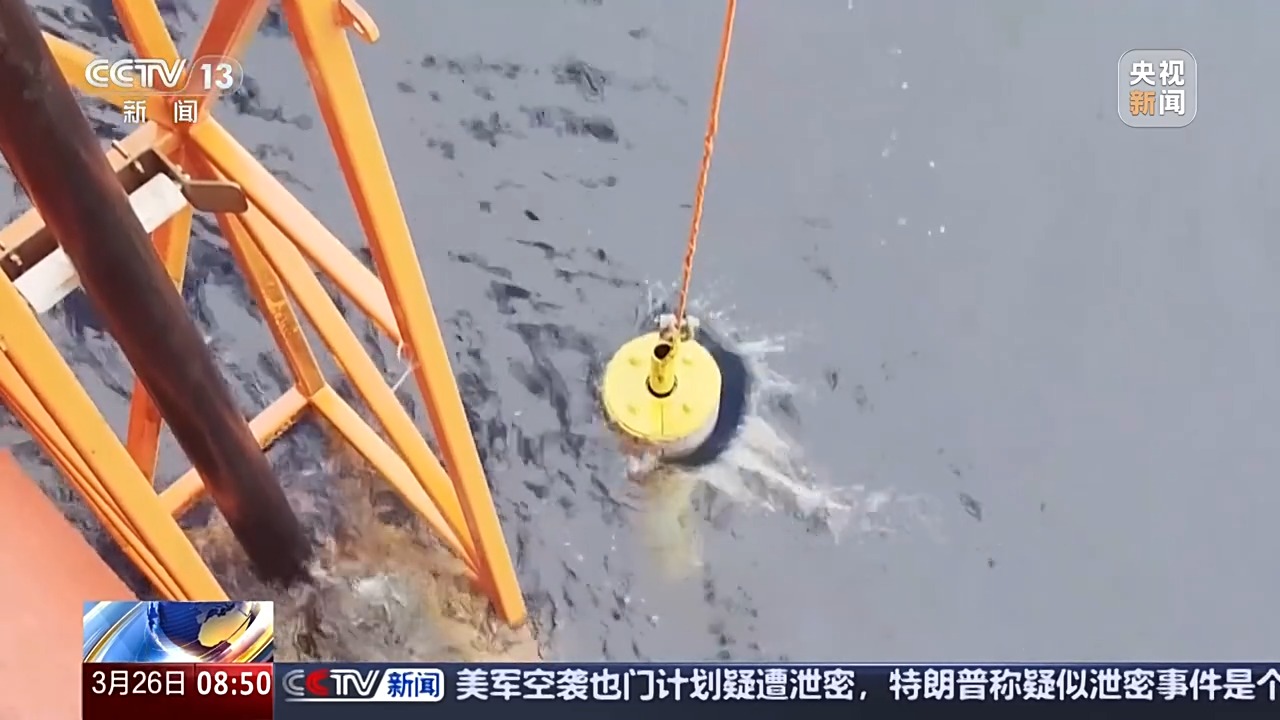 在經過3個小時的下放回收後,上午9點10分,重力柱出水。