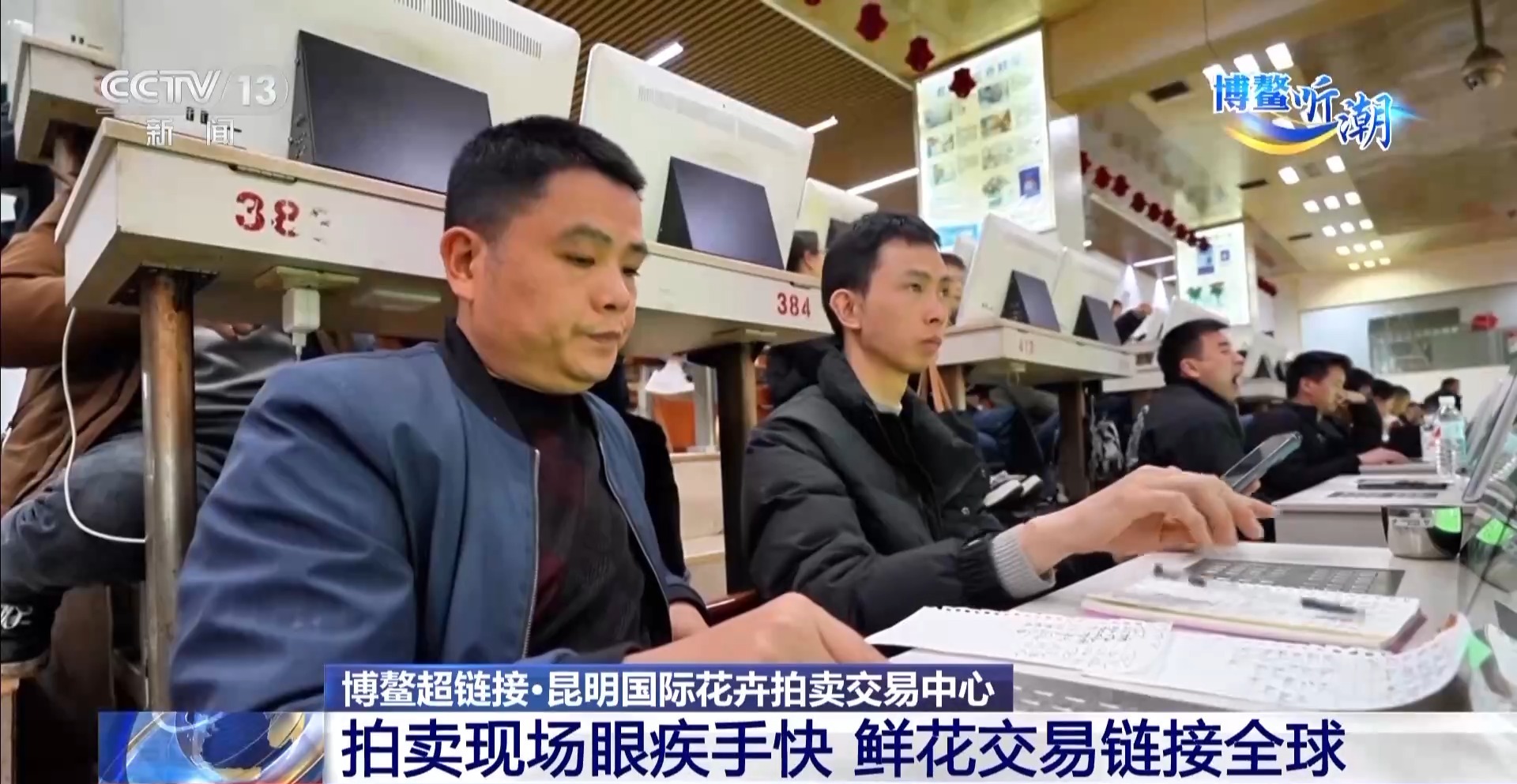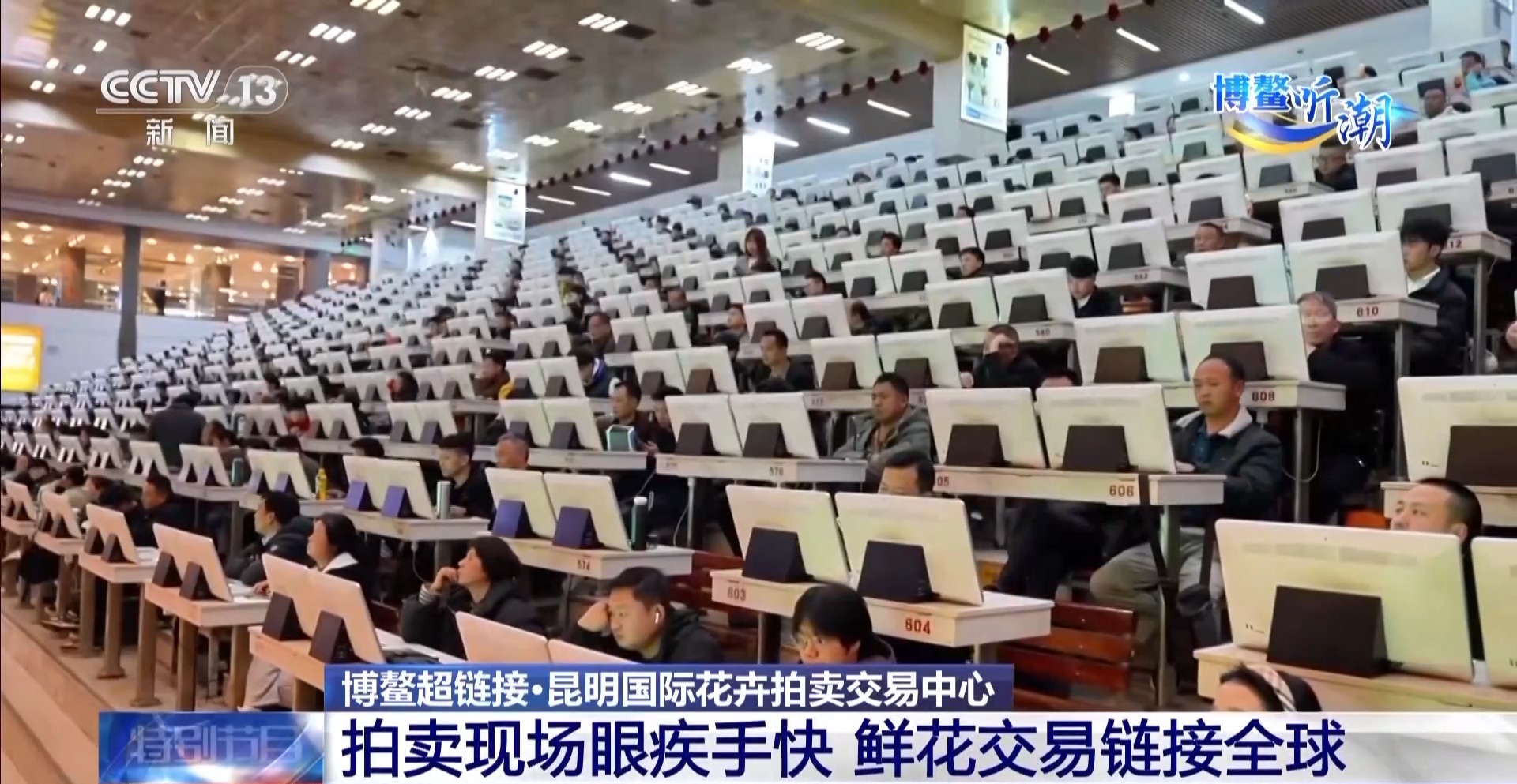 在昆明國際花卉拍賣交易中心裏,每天都有數百萬枝鮮切花通過拍賣銷往世界各地。