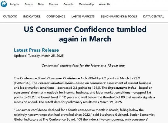 美媒發現:惡果來了,美消費者信心指數在3月跌至過去12年新低
