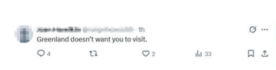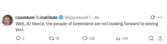 還有網友喊話萬斯,“格陵蘭島人不期待看到你”。↓