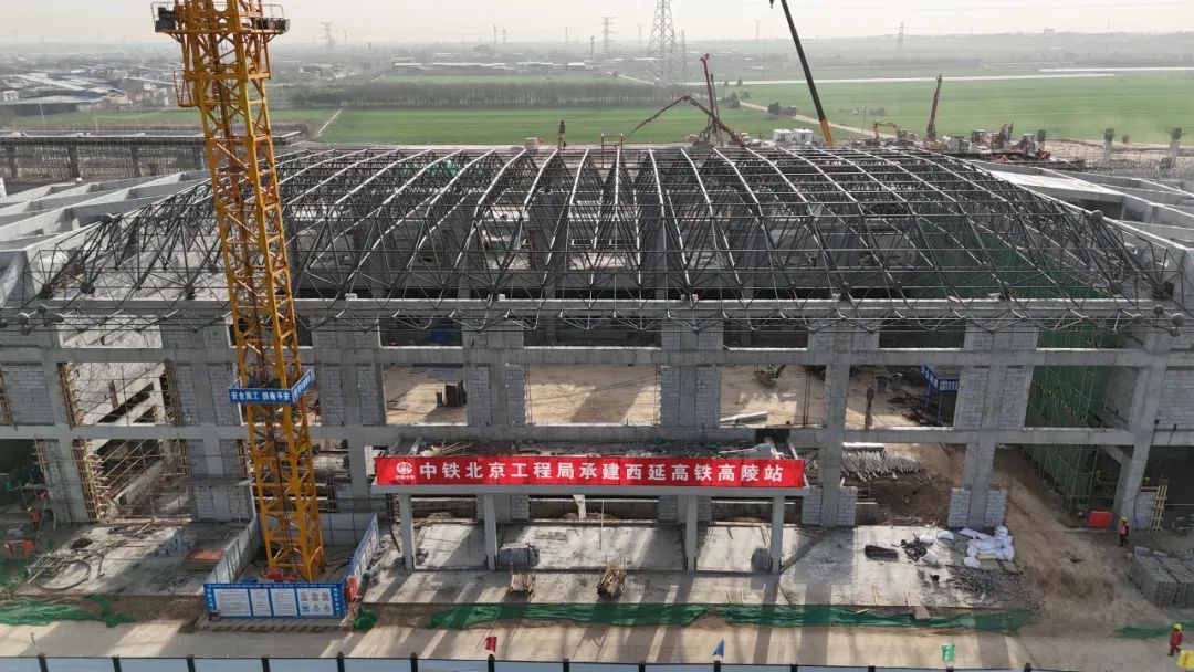*高陵站鋼網架安裝的圓滿完成,是西延高鐵建設取得的又一重要階段性成果,*為後續金屬屋面、站房裝飾裝修創造了有利條件。