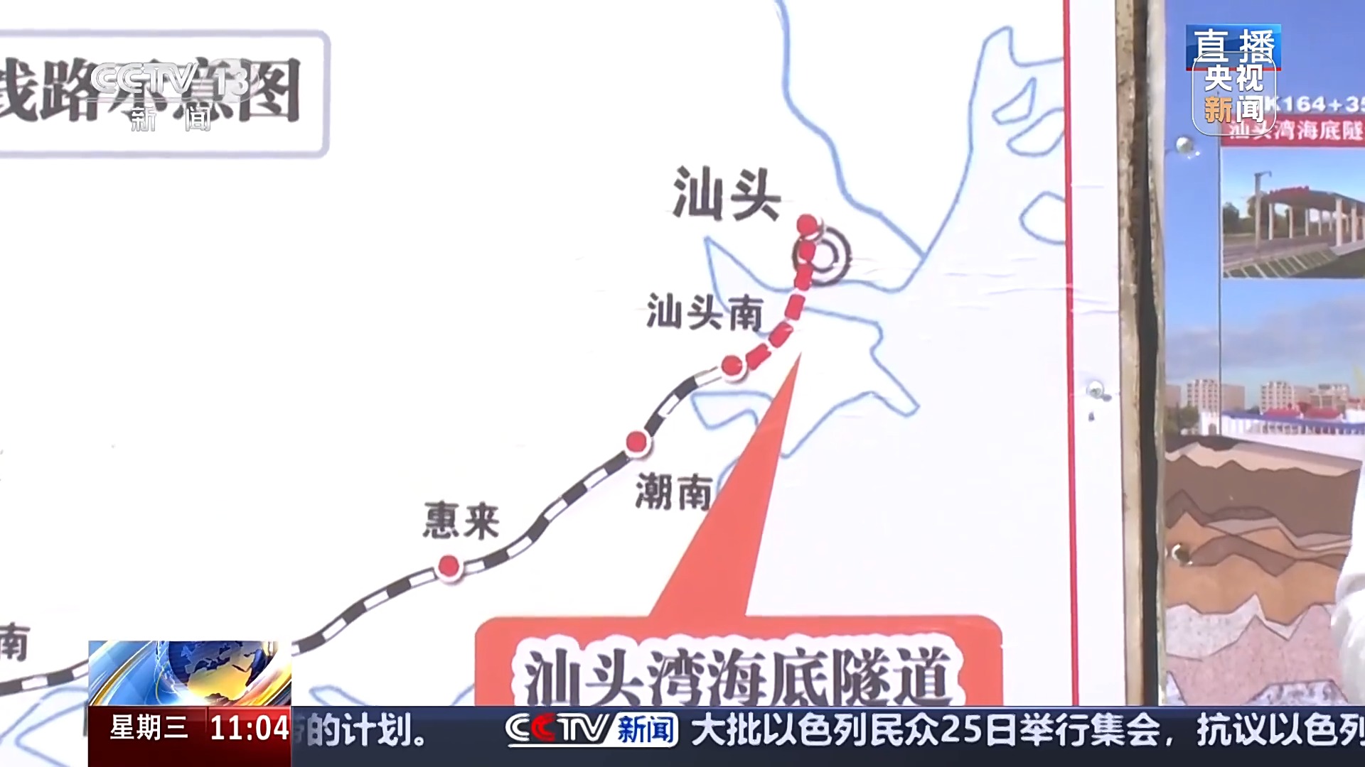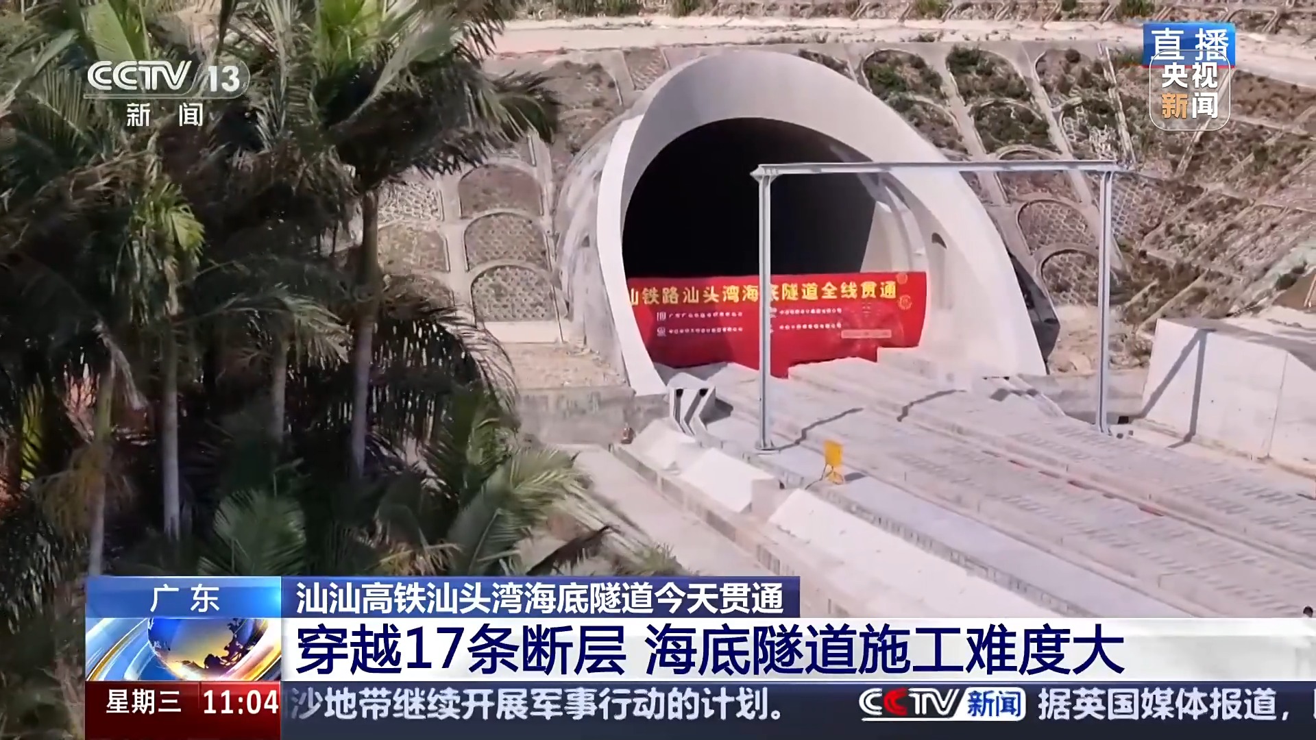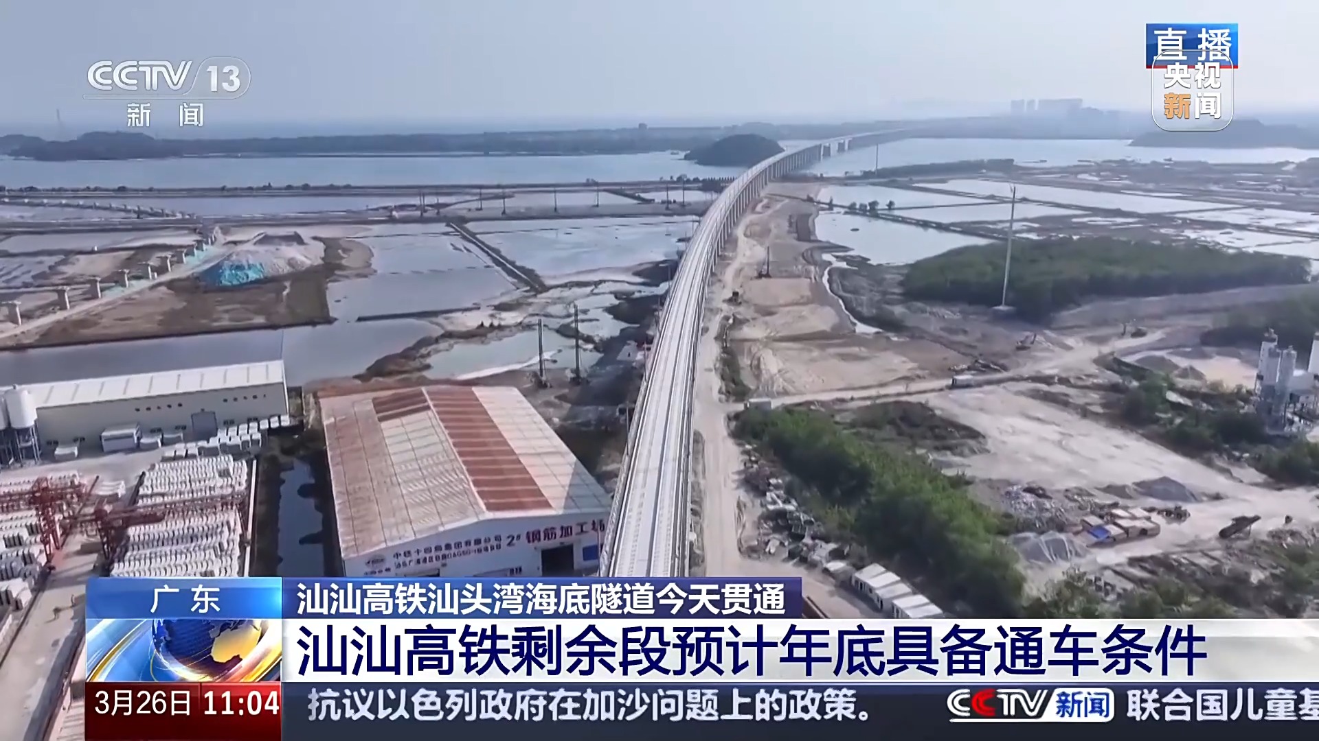 汕汕高鐵,正線全長約162公里,從廣東的汕尾到汕頭,其中,汕頭南至汕尾段已於2023年底先行通車,剩餘段也就是最難攻克的汕頭灣海底隧道所在的這一段,今天貫通後,預計今年年底具備通車條件。