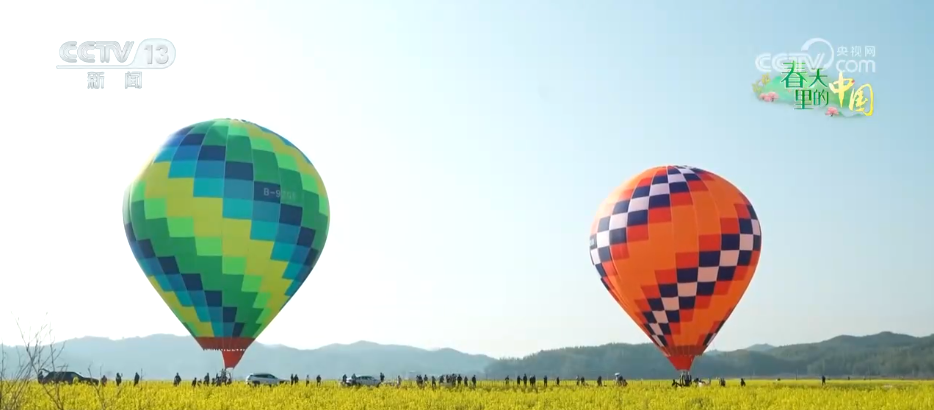 在這個盛花期,當地推出了熱氣球賞花項目,遊客可以乘坐熱氣球緩緩升空,俯瞰萬畝花海,金黃色的油菜花田與遠處的青山、村莊交相輝映,美麗景色盡收眼底。