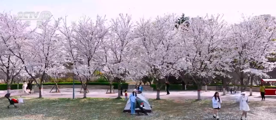 央視網消息: 春日景盛,奼紫嫣紅。在河北石家莊的石津灌渠文化公園,近百株早櫻漸次開放。如雲似霞的櫻花綴滿枝頭,微風拂過,落櫻飛舞,好似下了一場櫻花雨。浪漫的景色吸引了不少市民前來拍照打卡,或在櫻花樹下支起帳篷露營,盡情享受春日美好時光。據瞭解,該公園內共種植有櫻花樹1600餘株,將在未來兩週內陸續綻放。