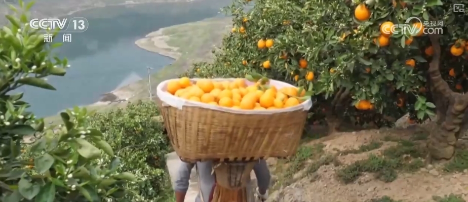 央視網消息: 半城山水滿城橘,碩果豐收惹人喜。眼下,正是湖北宜昌市秭歸縣晚熟臍橙成熟的季節。在秭歸縣懸崖邊的臍橙園,無人機馱着沉甸甸的橙筐翻山越嶺,軌道“小火車”載着金燦燦的果實穿梭田間。