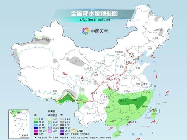 過程最低氣温將出現在3月29日夜間至30日凌晨,最低温度0℃線將位於華北南部至秦嶺一帶。