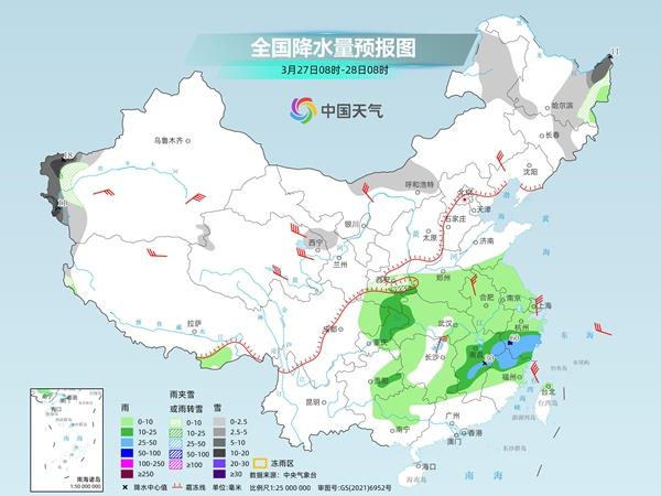 今天(3月27日)至30日,寒潮將繼續影響我國。*今天起,中東部開啓氣温大跳水,其中,南方多地降温前後冷暖差異巨大,*像是杭州、武漢,昨天最高氣温高達34℃,今天起氣温就將開始“滑坡”,週末前後或再次感受冬日寒意,公眾需及時增衣保暖。此外,今天至30日南方將持續有大範圍陰雨,華北、東北部分地區今明天有降雪,公眾請注意防滑。