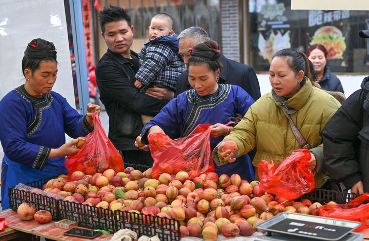 村民在貴州省榕江縣忠誠鎮“村超村集”選購水果(2025年1月21日攝)。新華社記者 楊文斌 攝
