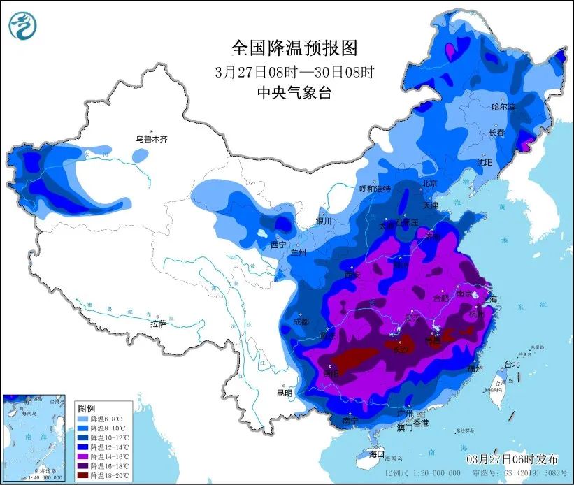 西部、中東部、東南部地區降幅超10℃