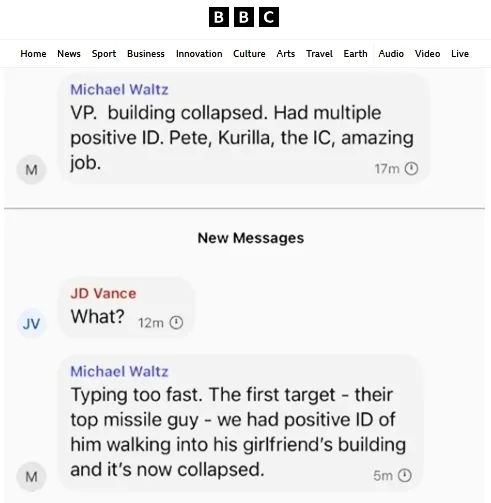 在羣聊的後一部分,白宮國家安全顧問邁克爾·華爾茲提供了這次襲擊的最新通報,軍事上稱作“毀傷效果評估”。