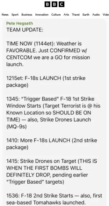 赫格塞思泄露作戰計劃。圖/英國廣播公司