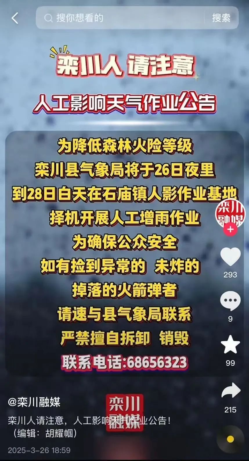 河南多地發佈人工增雨通知!提醒:如發現故障彈或者火箭彈殘骸,不要靠近!
