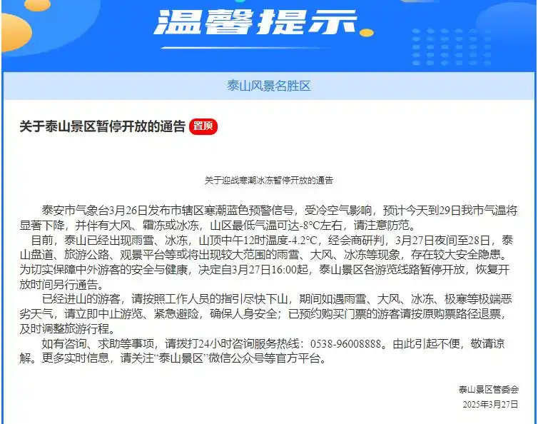 泰山景區温馨提示