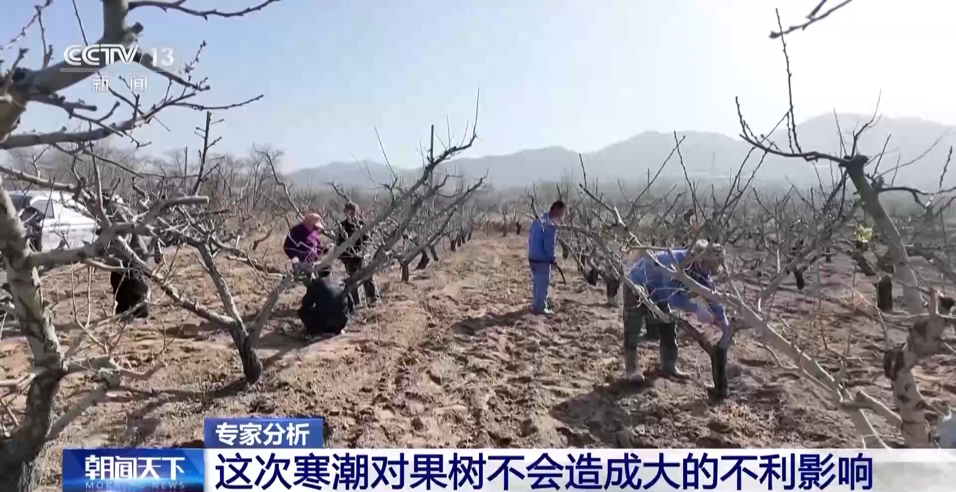 *中國農業科學院鄭州果樹研究所研究員 薛華柏:*根據中央氣象台的預報,這次寒潮最低氣温0℃線大致處於華北中部至陝西南部一線,當前抵禦寒潮能力最弱、處於花期前後階段的果樹,恰好大多集中在最低氣温0℃線以南地區。經歷的最低温度在0℃附近震盪,且持續時間較短,不會對果樹造成過大的影響,而且這次寒潮帶來的雨雪強度不大,冰雪融化造成二次凍害的可能性較小,大家做好預防即可。