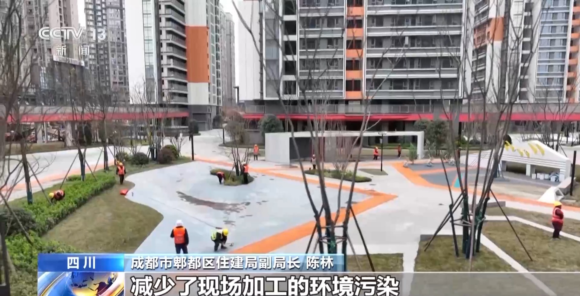 *成都市郫都區住建局副局長 陳林:*保障房項目40%的結構建築材料都是採用的工業化生產的產品進行安裝,隔音保温的效果更好,減少了現場加工的環境污染。