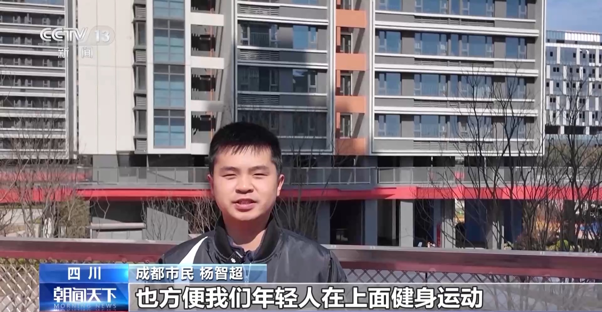 *成都市民 楊智超:*二樓這個跑道比較時尚,方便我們年輕人健身。