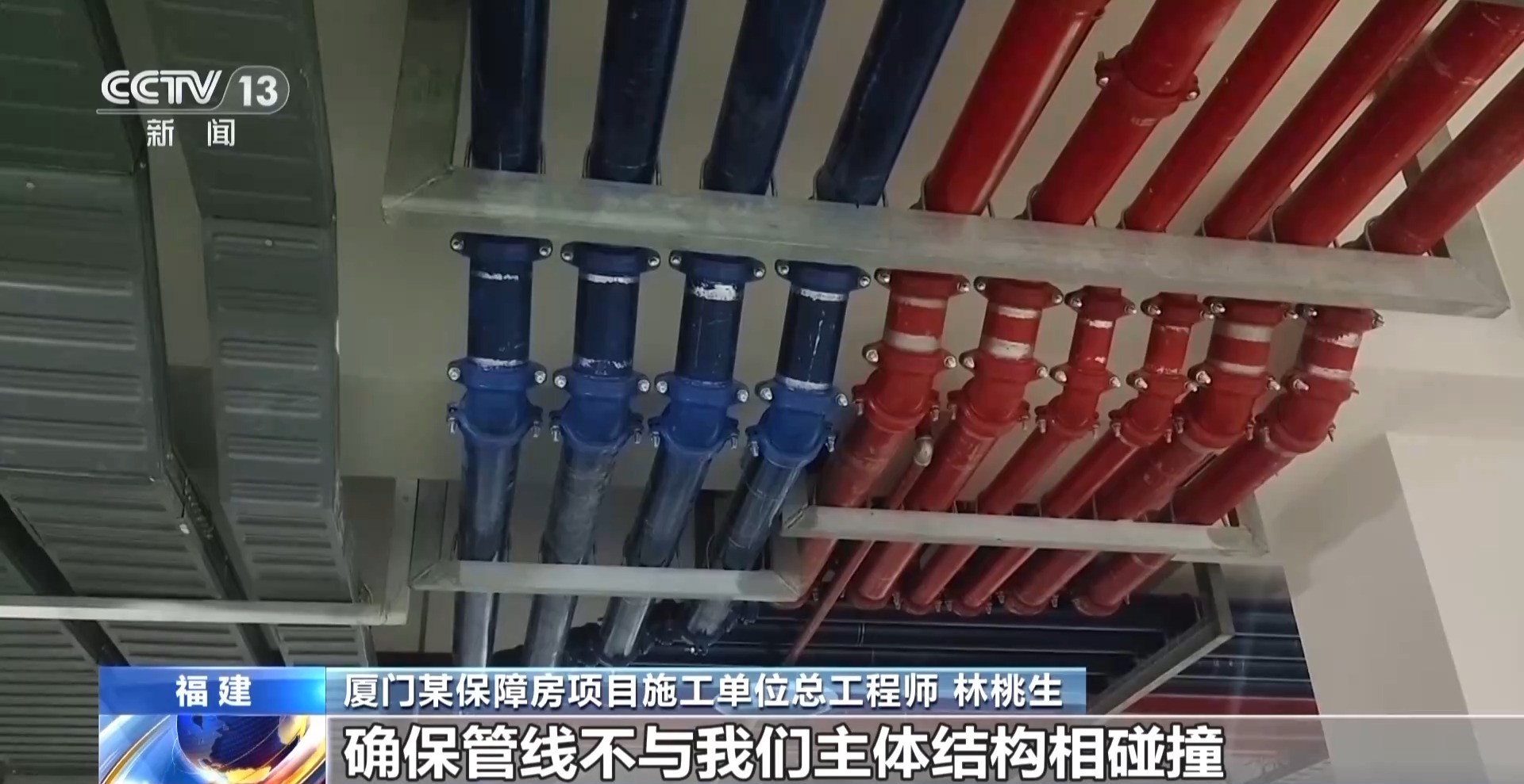 *廈門某保障房項目施工單位總工程師 林桃生:*3D立體的一個效果,將各種管綜的排布重新梳理,確保管線不與我們主體結構相碰撞。