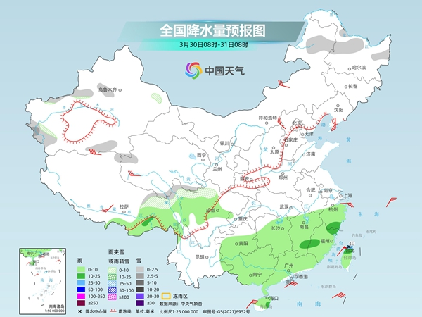 今天至31日,南方仍會維持多陰雨的天氣格局,其中今天華南部分地區伴隨降雨還可能出現強對流天氣,明天起南方則以穩定性降水為主。
