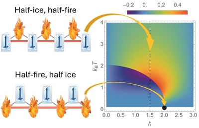 科技日報北京3月27日電 (記者張佳欣)據美國能源部布魯克海文國家實驗室官網25日消息,物理學家在研究亞鐵磁材料的一維模型時,發現了一種“半冰半火”的物質新相態,併成功用數學模型予以闡釋。這一突破填補了凝聚態物理學的認知空白,可能會給量子計算和自旋電子學等技術帶來巨大進步。相關論文發表於新一期《物理評論快報》。