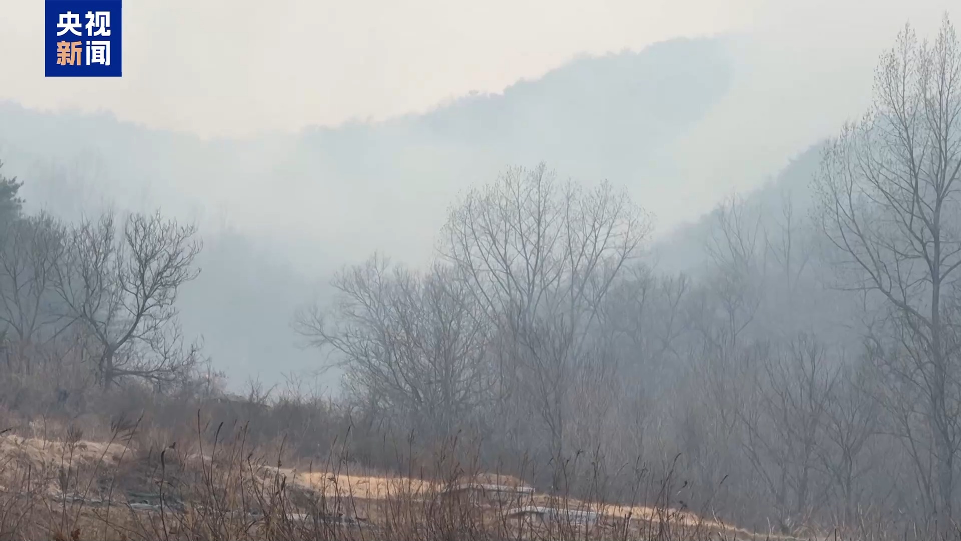 *總枱記者 唐鑫:*我們現在來到了慶尚北道安東市一處工廠的所在地。通過鏡頭可以看到,在目光所及範圍之內,這家工廠幾乎所有建築都在山林大火中被燒燬。根據目測,整個廠區有數千平方米,在現場還能看到濃重的黑煙,我也能聞到刺鼻的氣味。這一次山火不僅是給森林,也給當地民眾生活以及工廠等造成嚴重損失。